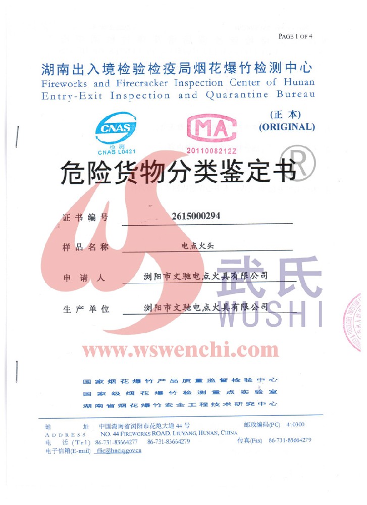 瀏陽市文馳電點(diǎn)火具有限公司(原培文電子點(diǎn)火器材廠),創(chuàng)建于1998年,是一家專業(yè)從事研制銷售電子點(diǎn)火產(chǎn)品的民營科技企業(yè),是我國第1枚煙花用電點(diǎn)火頭生產(chǎn)者,是《煙花爆竹電點(diǎn)火頭國標(biāo)》牽頭起草單位。公司位于中國“煙花之鄉(xiāng)”湖南省瀏陽市,地理位置優(yōu)越,交通便利。 我公司研制的對(duì)象是用電能引燃火藥、做機(jī)械功等預(yù)定功能的一次性使用的元件或裝置,包括電點(diǎn)火頭(英文名ElectricMatch or Electric Igniter,中文俗稱“電火柴”或“電發(fā)火頭”)、電點(diǎn)火管和延期電點(diǎn)火管;我們估且在以后的產(chǎn)品技術(shù)欄中將我們研究的產(chǎn)品統(tǒng)稱為電點(diǎn)火具,將電點(diǎn)火器看成是用于提供和控制供給電點(diǎn)火元件點(diǎn)火的電能器材;我們研究的電點(diǎn)火橋路有橋絲式、無橋絲···